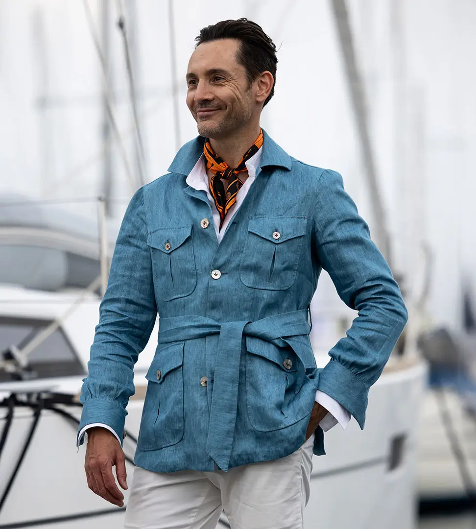 Made with soft Italian linen our uber cool and comfortable safari jackets are the perfect balance between smart casual and sporty style.