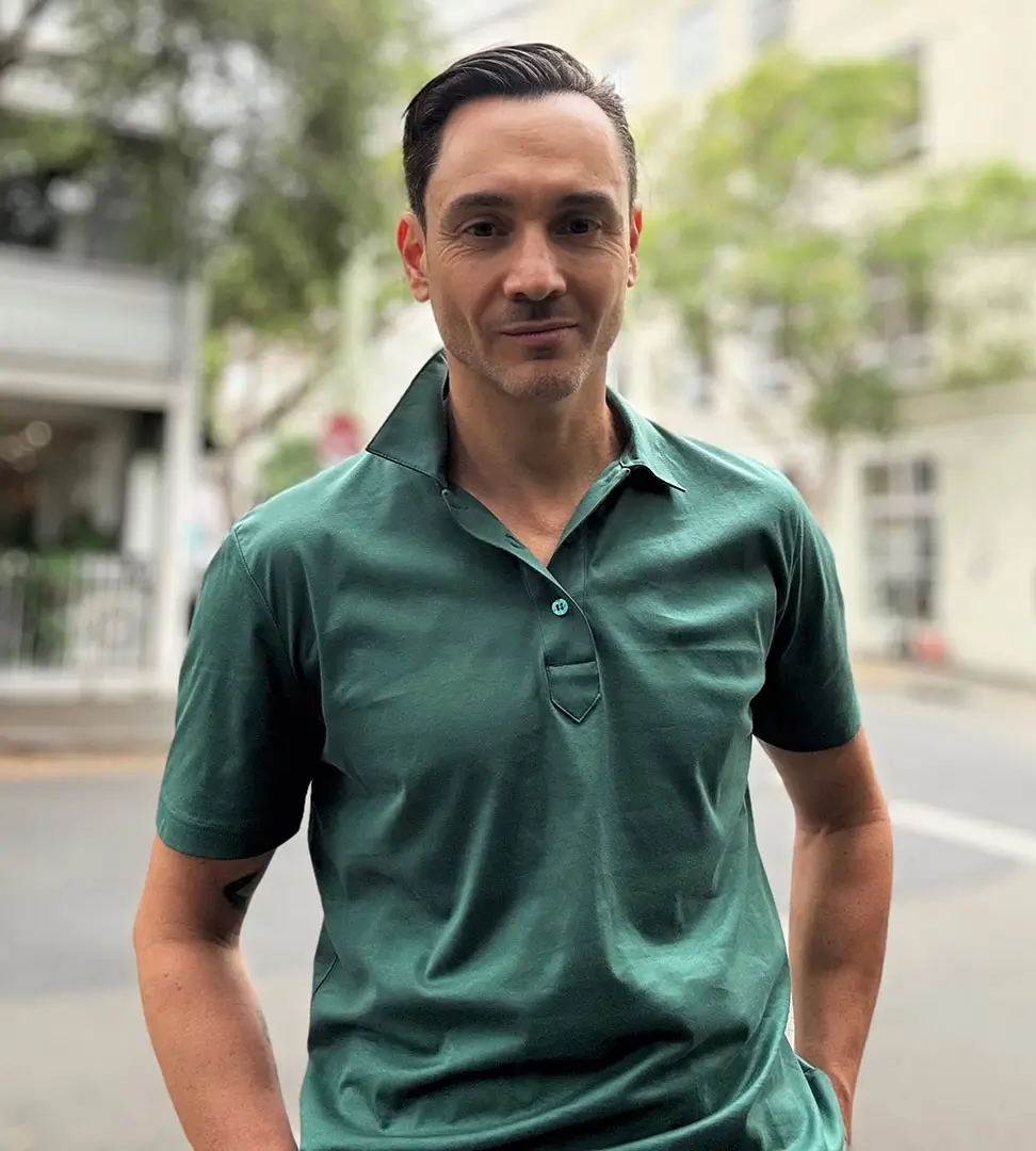 Our stunning range of jersey polo made from the softest Italian jersey cotton featuring a unique design and enriched with abalone buttons.