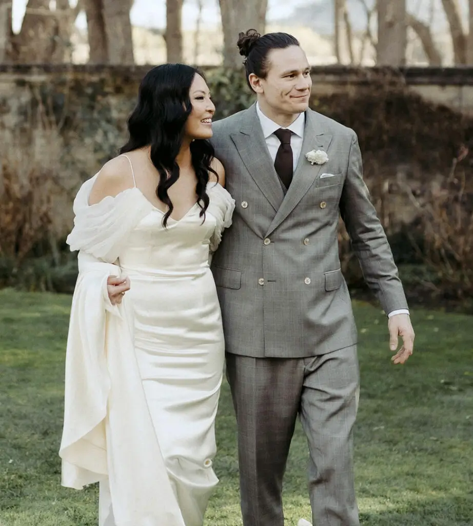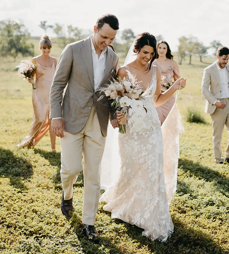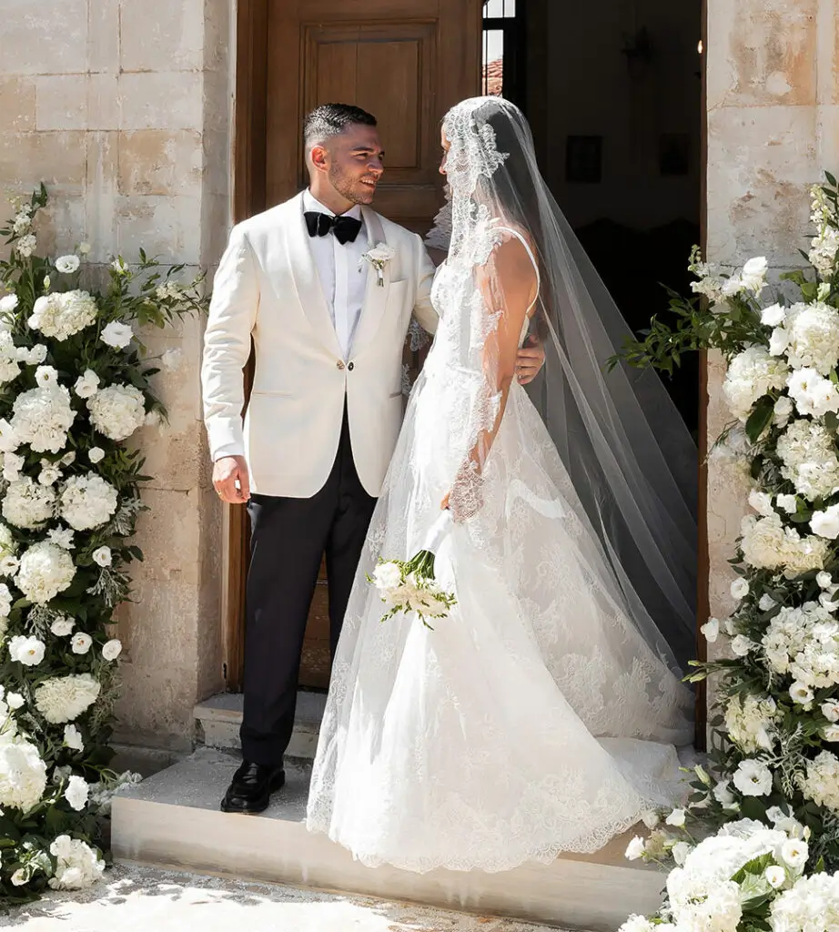 White dinner jacket and midnight navy trousers as the classic outfit for a day wedding.